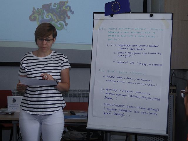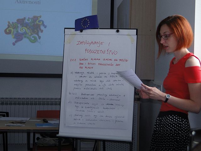 U tri grupe mladi i donositelji odluka kreirali su aktivnosti te ih predstavili ostatku sudionika. Proces je bio kreativan i produktivan, a svakako je ostavljeno i prostora za sve naknadne ideje i prijedloge koje mladi mogu predložiti prije krajnje izrade Operativnog plana.