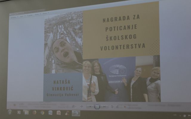 Gimnazija Vukovar, mjesto je u kojoj učenici pored formalnog obrazovanja svoja znanja i vještine stječu i kroz neformalno obrazovanje, posebice kroz volontiranje i školski volonterski klub. Svakako značajnu ulogu u tom procesu ima profesorica geografije koja svakodnevnim aktivnostima ugrađuje u svoje učenike vrijednosti kao što su humanost, empatija, tolerancija, poštivanje različitosti i građanski aktivizam kako bi jednog dana postali časni ljudi koji pomažu svojoj zajednici. Pored svega u svome radu promiče i međusektorsku suradnju što dokazuje i uključivanje u inicijative udruga, pa su tako primjerice učenici Gimnazije Vukovar povodom Svjetskog dana hrane i Svjetskog dana siromaštva organizirali akciju "Ne bacaj, doniraj!", a prikupljene nekvarljive namirnice s ovih akcija i iz donatorskog kutka u samoj školi, odnijeli u socijalnu samoposlugu i tako pomogli socijalno ugroženim građanima. Učenici sudjeluju i u mnogobrojnim kampanjama poput Time to Move te tako uče i promoviraju mogućnosti za mobilnost koje im se nude u okviru programa Erasmus+. Učenici Ambasadori EU parlamenta, pod vodstvom profesorice, u sklopu EPAS programa pripremaju i provode interaktivna predavanja kroz module na temu Europska unija. Profesorica Nataša Vinković pobrinula se i da njihove aktivnosti, pa samim time i grad Vukovar budu prepoznat i u Briselu gdje su posjetili Europski parlament kao pobjednici Consumer Classroom natjecanja.