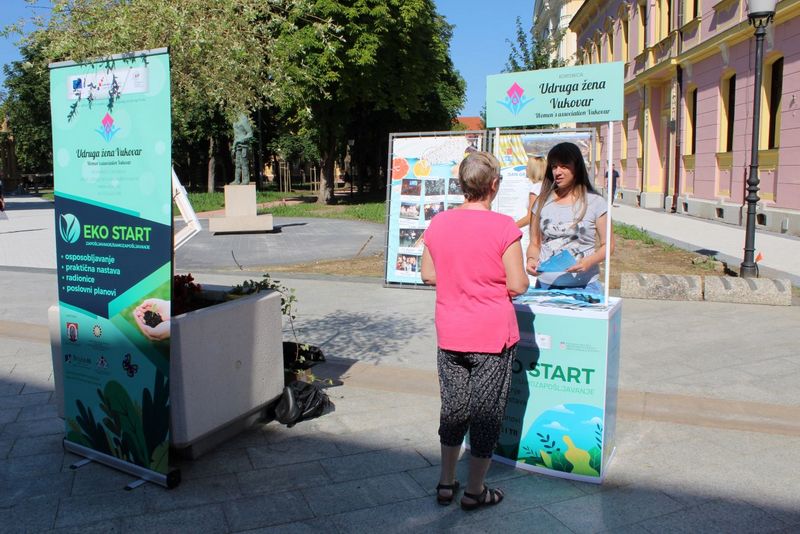 Projekt EKO START, iz poziva „Lokalne inicijative za zapošljavanje-faza III UP.01.3.1.01. provodi Udruga žena Vukovar sa partnerima Učilištem Studium, Poduzetničko razvojnim centrom općine Erdut lokalna razvojna agencija d.o.o. za pružanje usluga, Gradom Vukovarom i Hrvatskim zavodom za zapošljavanje područni ured Vukovar a financiran sredstvima Europske unije u okviru Operativnog programa učinkoviti ljuski potencijali 2014.-2020. iz sredstava Europskog socijalnog fonda u 100% iznosu.