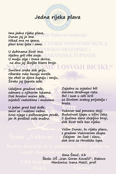 Već tradicionalno, Lions club Vukovar i ove godine raspisao je natječaj za učenike osnovnih škola Vukovarsko-srijemske i Osječko-baranjske županije pod nazivom „Napiši pjesmu i osvoji bicikl“.