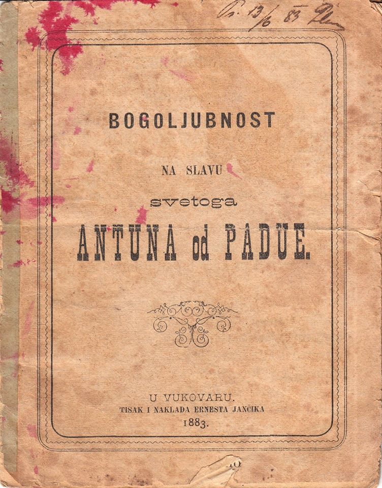 Riječ je o unikatnoj brošuri Bogoljubnost na slavu svetoga Antuna od Padue objavljenoj u Vukovaru 1883. godine tiskom i nakladom Ernesta Jančika. Knjižica je malog formata, obima 16 stranica i sadrži upute i molitve vezane uz pobožnosti posvećene Svetom Antunu Padovanskom.