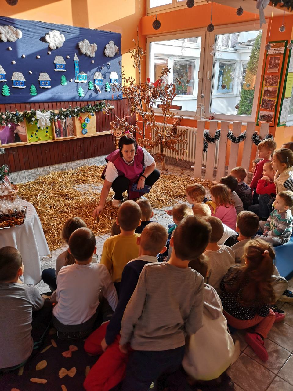 U posebno pripremljenoj sredini, s karakterističnim pravoslavnim simbolima poput slame, badnjaka, svijeće, božićne pšenice, oraha i suhog voća, uz duhovnu glazbu te priče o rođenju Isusa, djeci je približena narodna tradicija vezana uz ovaj najveći obiteljski praznik.