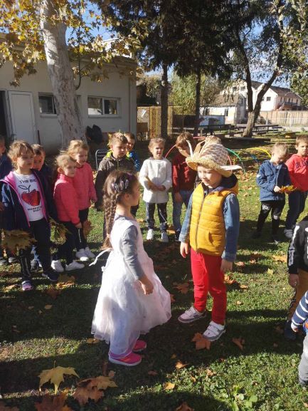 Na temu jeseni, pjesme, recitacije i dramatizacije djeca su izvodila u dvorištu vrtića. Lijep jesenji sunčan dan probudio je u djeci osjećaje radosti koje su izrazili kroz igru lišćem i plodovima jeseni.