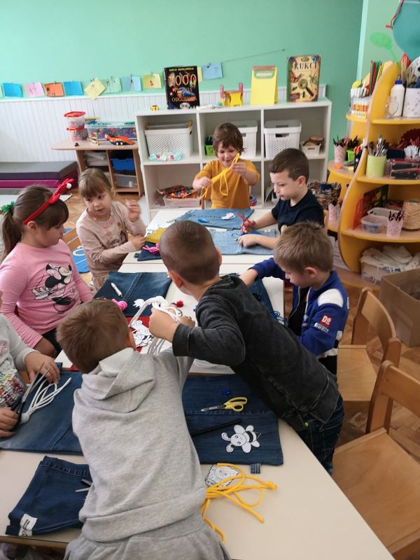 Djeca skupine „Mace“ krajem lipnja ove godine, prikupljali su stare stvari koje više ne nose. Od tih stvari napravljene su vrećice za preobuku.