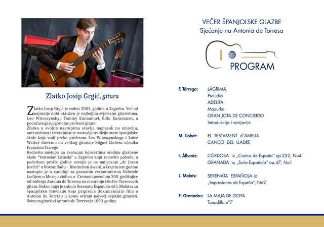 Mladi zagrebački gitarist izveo je djela skladatelja F. Tarrega, M. Llobet, I. Albeniz, J. Malats i E. Granados.