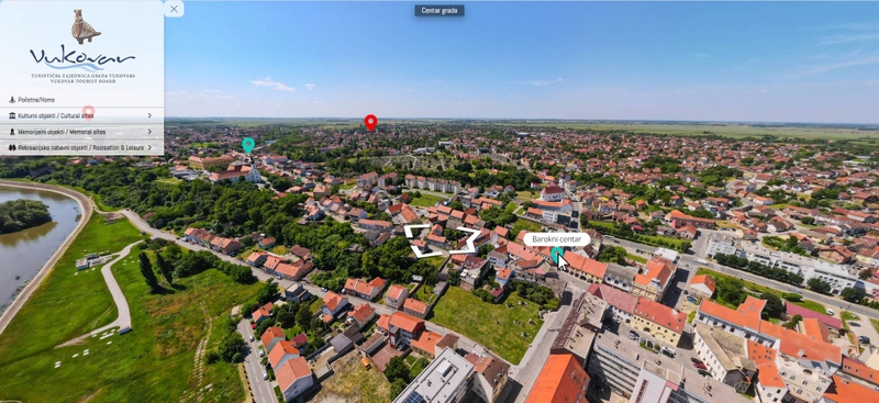 Suradnja s najboljim Google certificiranim fotografima omogućila nam je da korisnicima i budućim gostima pružimo kvalitetan i jednostavan virtualni obilazak Vukovara te prezentiramo sve ljepote našeg bisera na Dunavu. Jednostavnim klikom na strelice smještene iznad panorame Vukovara prelazite s jedne na drugu dronsku snimku te odabirite svoj najljepši pogled na Vukovar. A klikom na takozvane lokatore koji su označeni različitim bojama, ovisno o kakvoj vrsti atrakcije se radi (muzeji, memorijalne lokacije ili rekreacijsko-zabavni objekti), spuštate se na zemlju gdje vam je potom na odabranoj lokaciji također omogućen 360° panoramski pogled ili pak virtualni obilazak znamenitosti koju je korisnik odabrao. Naime, kako mnoge ključne atrakcije Vukovara u ponudi već imaju virtualne ture svojim prostorima, iste smo povezali s ovom panoramskom šetnjom i korisnicima omogućili da Vukovar zaista istraže do kraja. Tako je moguć virtualni obilazak Muzeja vučedolske kulture, Gradskog muzeja Vukovar, Franjevačkog samostana i muzeja sv. Filipa i Jakova, Mjesta sjećanja Vukovarska bolnica 1991., Spomen doma hrvatskih branitelja na Trpinjskoj cesti, Spomen doma Ovčara i Memorijalnog centra Domovinskog rata.