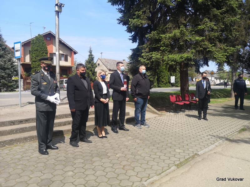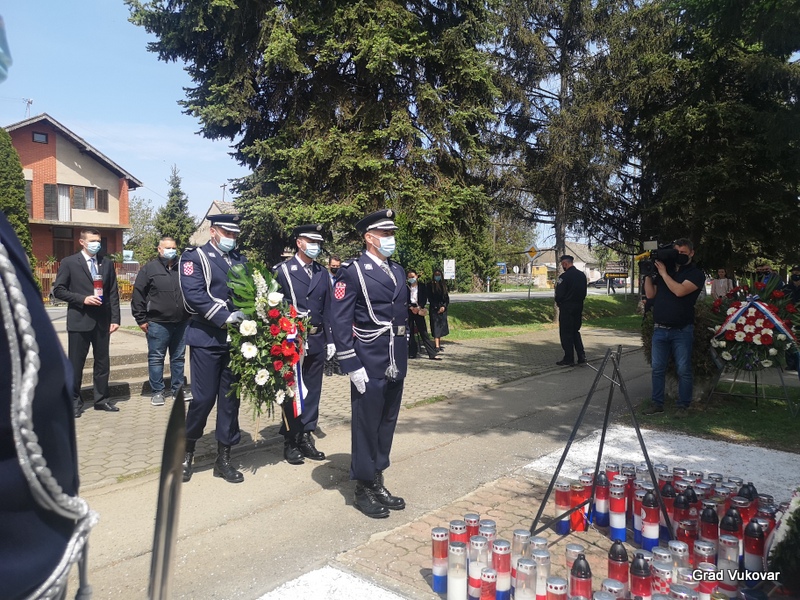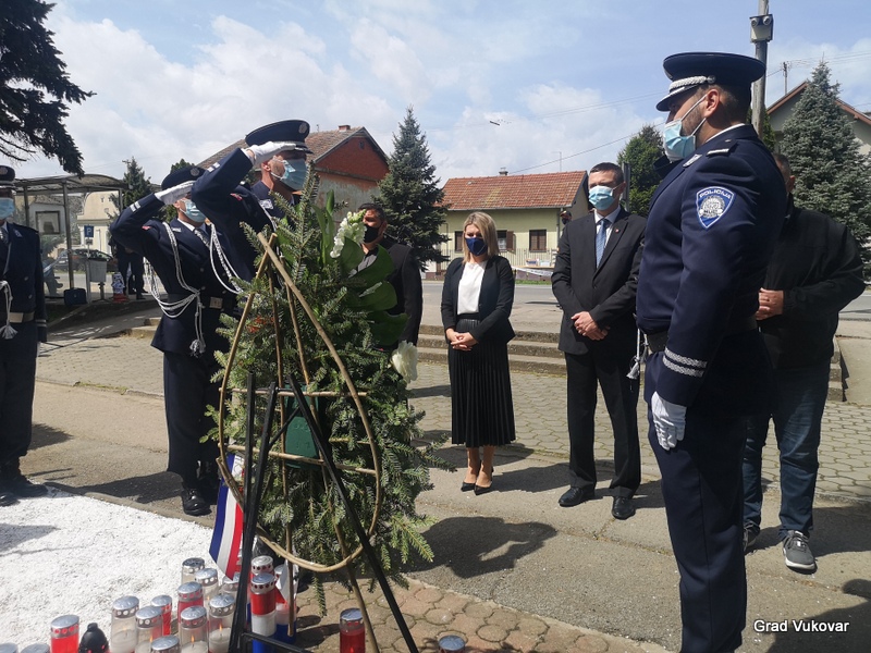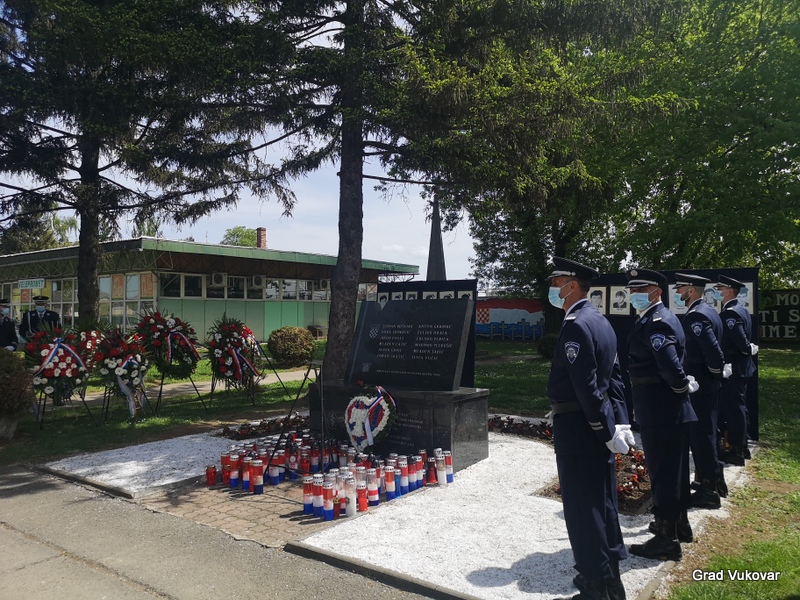 U spomen na ubijene redarstvenike delegacija Grada Vukovara predvođena gradonačelnikom Ivanom Penavom podno spomen obilježja položila je i vijenac i upalila svijeću.
