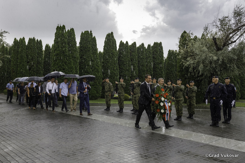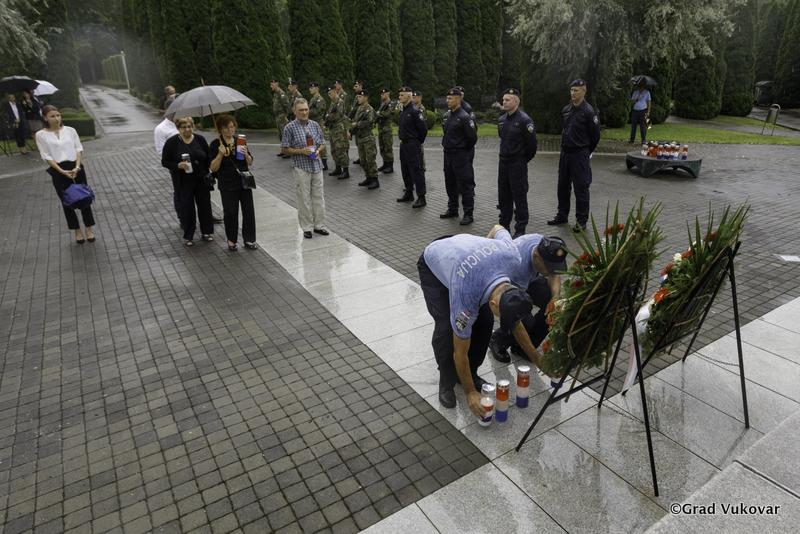 Vijenac je položila delegacija Grada Vukovara predvođena zamjenikom gradonačelnika Grada Vukovara Filipom Sušcem.