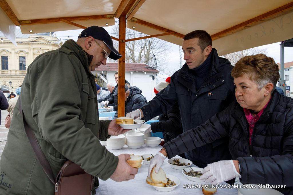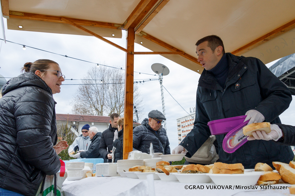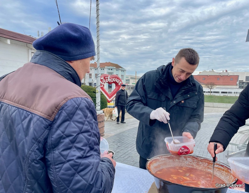 Ugodno badnje prijepodne sa svojim sugrađanima uz druženje i podjelu posnih jela proveli su gradonačelnik grada Vukovara Ivan Penava i zamjenik Filip Sušac te pročelnik Upravnog odjela za društvene djelatnosti Josip Paloš.