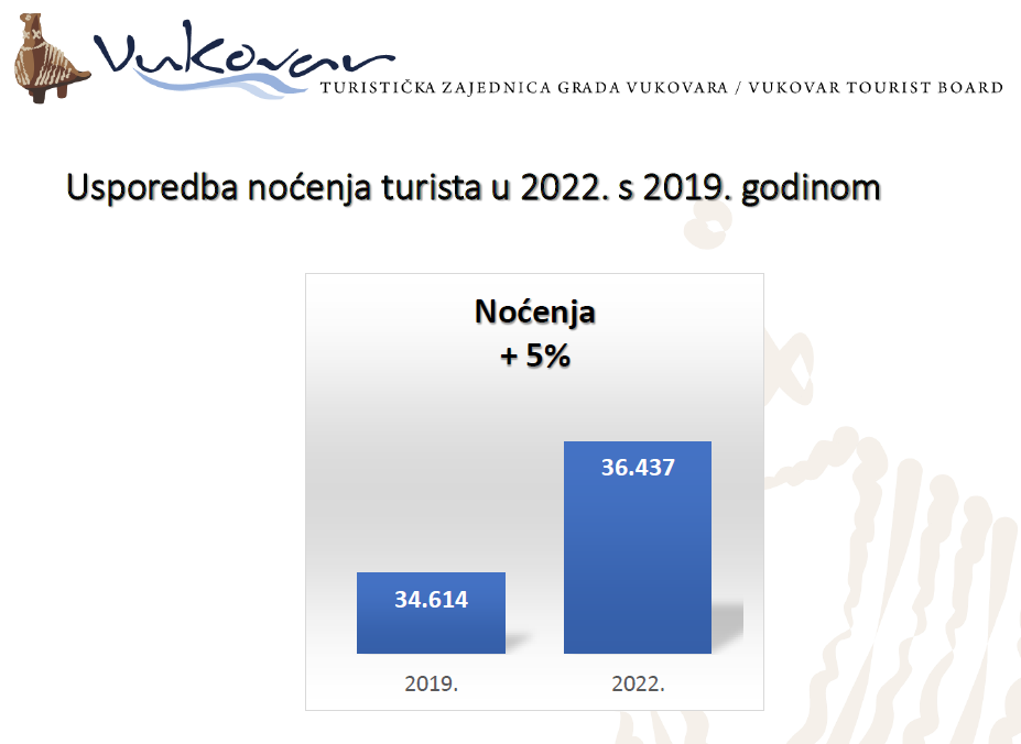 U usporedbi s rekordnom 2019. godinom, 2022. godina bilježi i 5% više noćenja turista u Vukovaru.