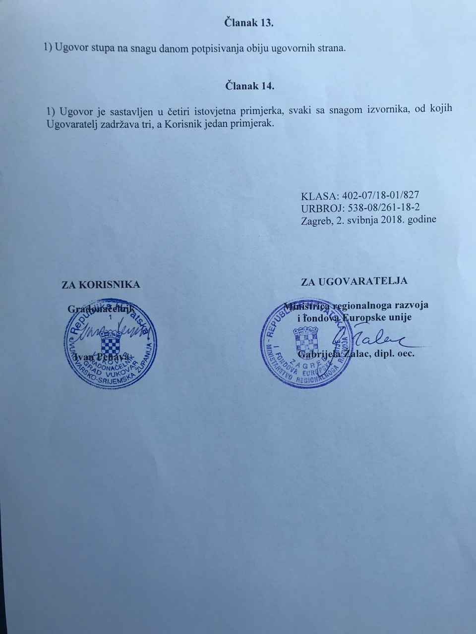 „Upravo potpisanim ugovorom započinjemo projekt izgradnje ceste i parkirališta u naselju Olajnica. Riječ je o novih 300 000 kuna povučenih za Vukovar iz Programa održivog razvoja lokalne zajednice," rekao je gradonačelnik Penava zahvaljujući se Ministarstvu regionalnog razvoja i fondova EU na čelu s ministricom Žalac i pomoćnici ministrice, Vukovarki Kristini Bilić.