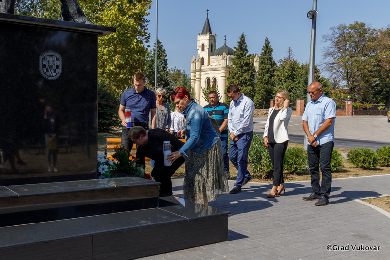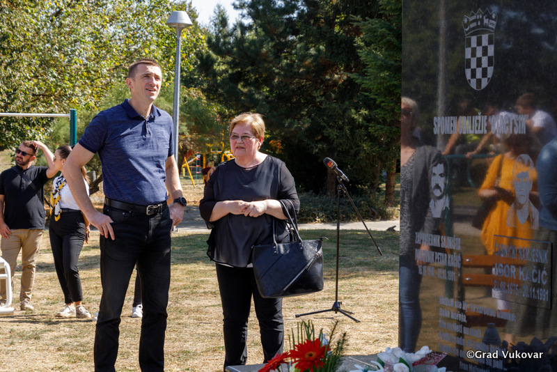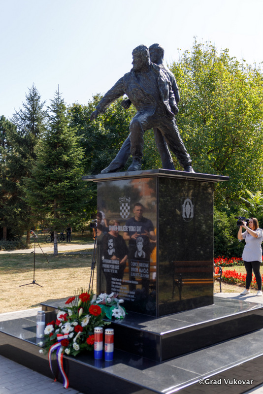 „Riječ je još jednoj od mnogobrojnih tragedija grada Vukovara Petru Kačiću, zapovjedniku obrane gradske četvrti Sajmište i Igoru Kačiću, 16-godišnjaku i najmlađoj žrtvi Ovčare koji je stradao zato što je bio Hrvat i zato što mu je otac bio jedan od zapovjednika. U spomen na njih dvojicu, ali i sve stradale u Domovinskome ratu, a posebno na Sajmištu, Grad Vukovar je na ovo mjesto gdje je dugo bila crta razgraničenja između obrambenih hrvatskih snaga i velikosrpskih agresora postavio spomenik koji je prvotno bio napravljen od lošeg materijala nepogodnog za vremenske uvjete. Izradom replike prvotnog spomenika ispravili smo tu nepravdu i postavili trajnu uspomenu na oca i sina Kačić,“ rekao je gradonačelnik Penava.