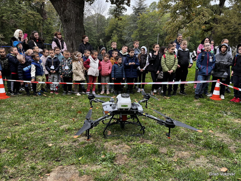 „Sadnja dronovima je 3-5 puta brža od dosadašnjih, tradicionalnih načina sadnje. Ono što je posebno je to da dronovi mogu pošumljavati na lokalitetima gdje ljudska noga ne može kročiti“, rekao je Ladišić. Ovo je deseta sadnja u Vukovaru, posađeno je oko 1000 sadnica te je dronom bačeno oko 40.000 samoklijajućih loptica.