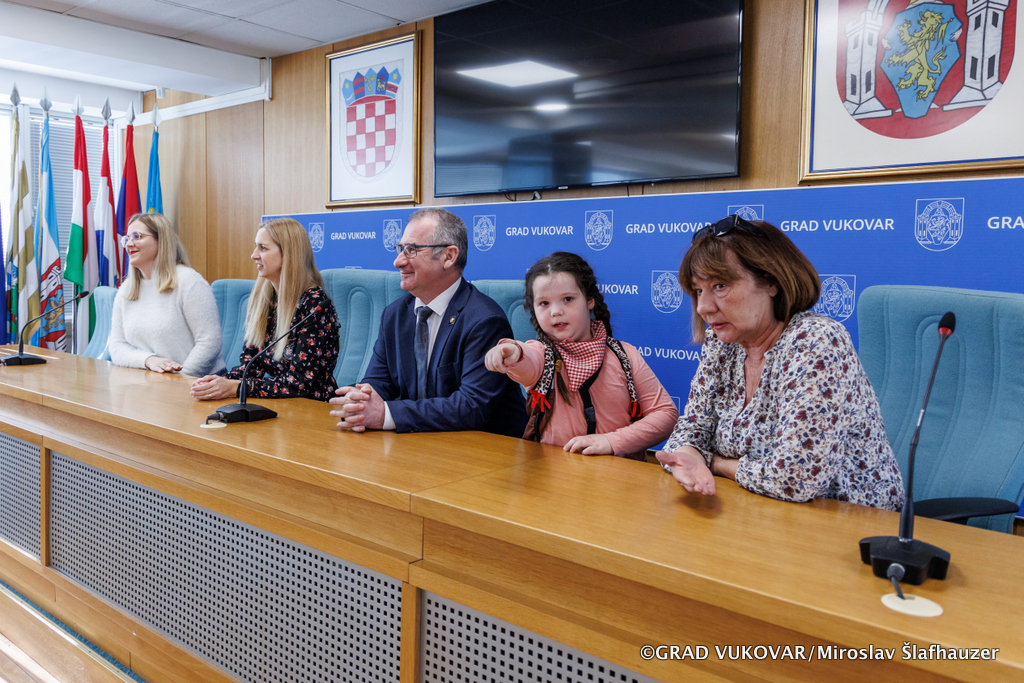 Pročelnik Upravnog odjela za obrazovanje, sport i branitelje Darko Dimić s predstavnicama Turističke zajednice grada Vukovara Davorkom Krajnović Naletilić i Nikolinom Blašković primili su u Gradskoj vijećnici Grada Vukovara maškare kojima su u subotu predani ključevi grada, skupinu Vjeverice Centralnog objekta Dječjeg vrtića Vukovar I.