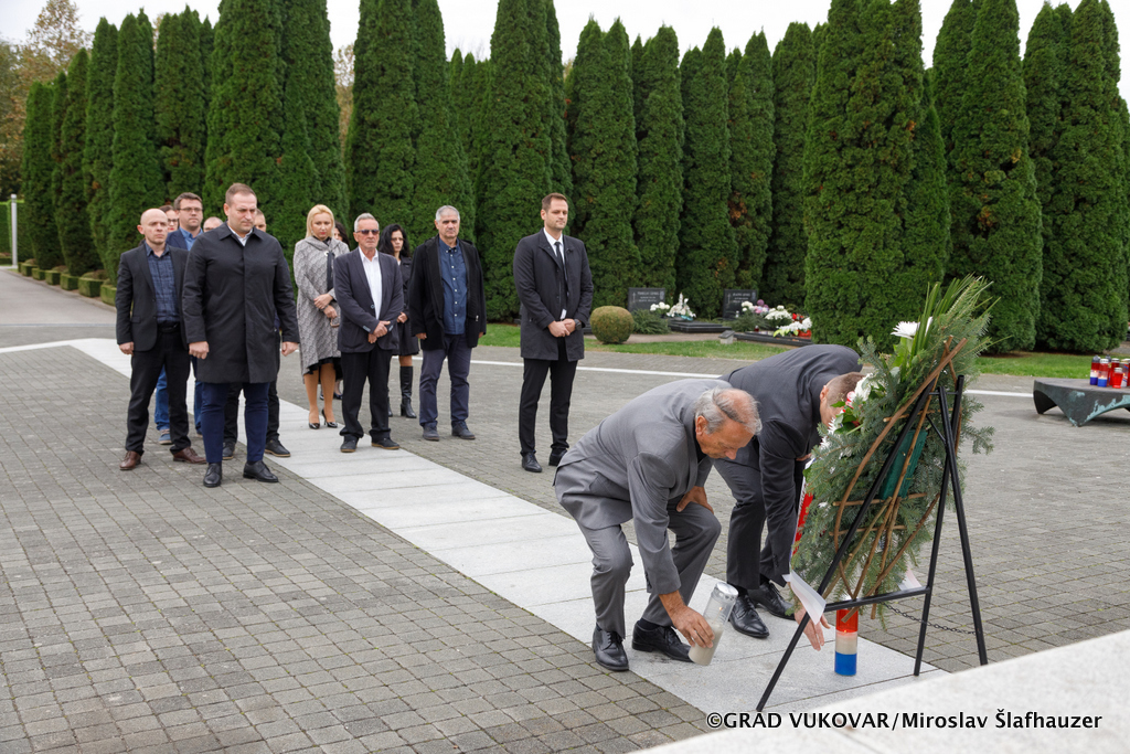 "U povodu sutrašnjeg blagdana danas smo položili vijenac te odali počast svim poginulim braniteljima i civilima, ali i svim našim preminulima. Oni ostaju u našim molitvama, mislima i srcima. Vukovarska groblja u studenom posjećuje veliki broj ljudi, pa i ovih dana imamo veliki priljev ljudi u grad. O uređenju groblja redovno skrbi Grad Vukovar, a u godini pred nama na Novom groblju kreće izgradnja kosturnice, projekt koji je vrijedan 250.000 eura, ali i dodatno uređenje površina i prilaznih staza za što je osigurano 150.000 eura, a kako bi svim korisnicima osigurali lakše pristupe te svu potrebnu komunalnu opremu i uređenje.", rekao je gradonačelnik Penava.