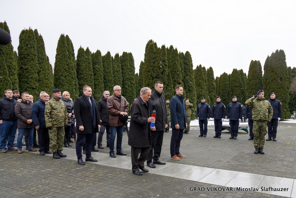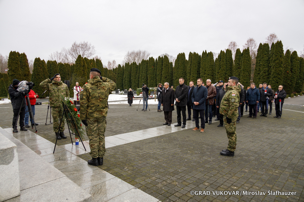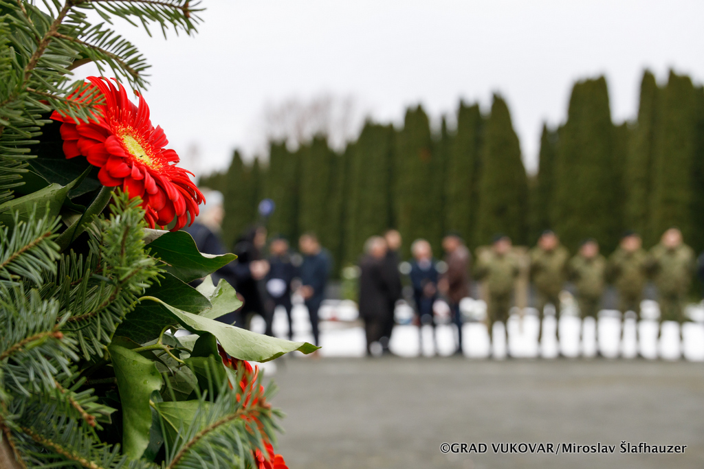 Vijenac je na Memorijalnom groblju žrtava iz Domovinskog rata u Vukovaru položila delegacija Grada Vukovara predvođena gradonačelnikom Ivanom Penavom i predsjednikom Gradskog vijeća Željkom Sabom.