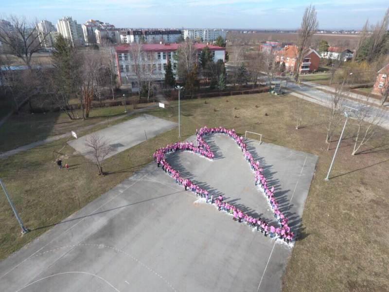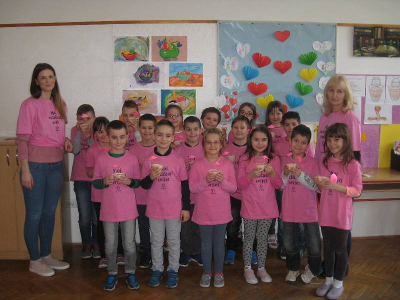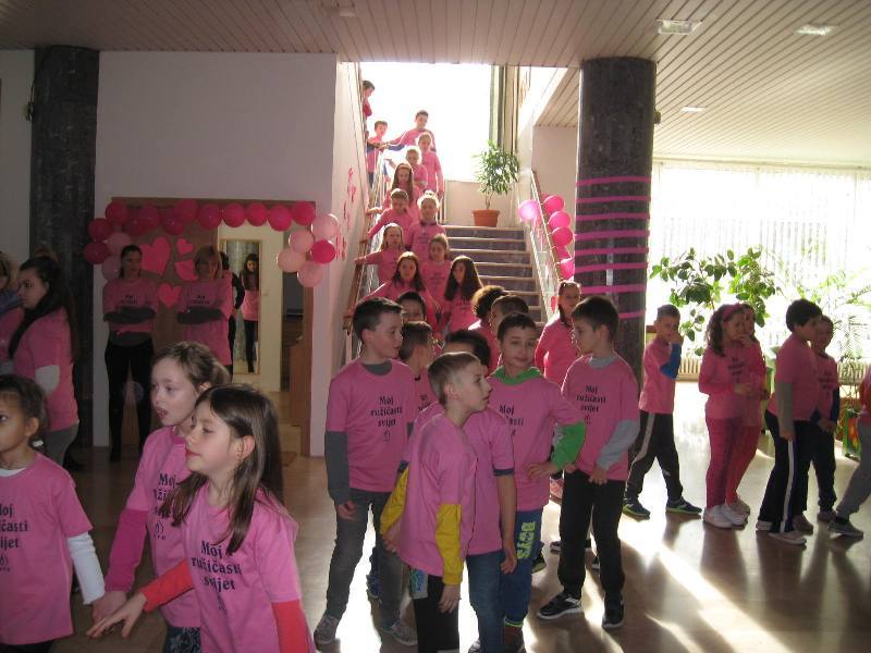 Planiranim školskim projektom „Moj ružičasti svijet" zaokružili su priču 22. veljače 2017.god. tako što su ispred škole oformili veliko srce ljubavi. Ružičaste majice je nosilo 205 učenika razredne nastave i 40ak učitelja i zaposlenika škole.
