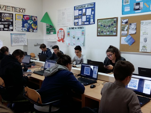 Kodirali smo i dekodirali koristeći QR kodove. QR kodovi (engl. Quick response = brzi odgovor) su tip dvodimenzionalnog koda. QR kod sastoji se (najčešće) od crnih kvadrata i pravokutnika raspoređenih u kvadratni uzorak na bijeloj pozadini. QR kodove može očitati svaki mobitel s fotoaparatom i pristupom internetu (ponekad Internet veza nije potrebna) koji ima instaliranu aplikaciju za čitanje QR kodova. Učenici su ponavljali nastavne sadržaje i odgovarali na postavljena pitanja nakon što su dekodirali sadržaj (http://www.qr-code-generator.com/) a kodirane odgovore putem edukativne društvene mreže Yammer, potom, dijelili sa drugim učenicima.