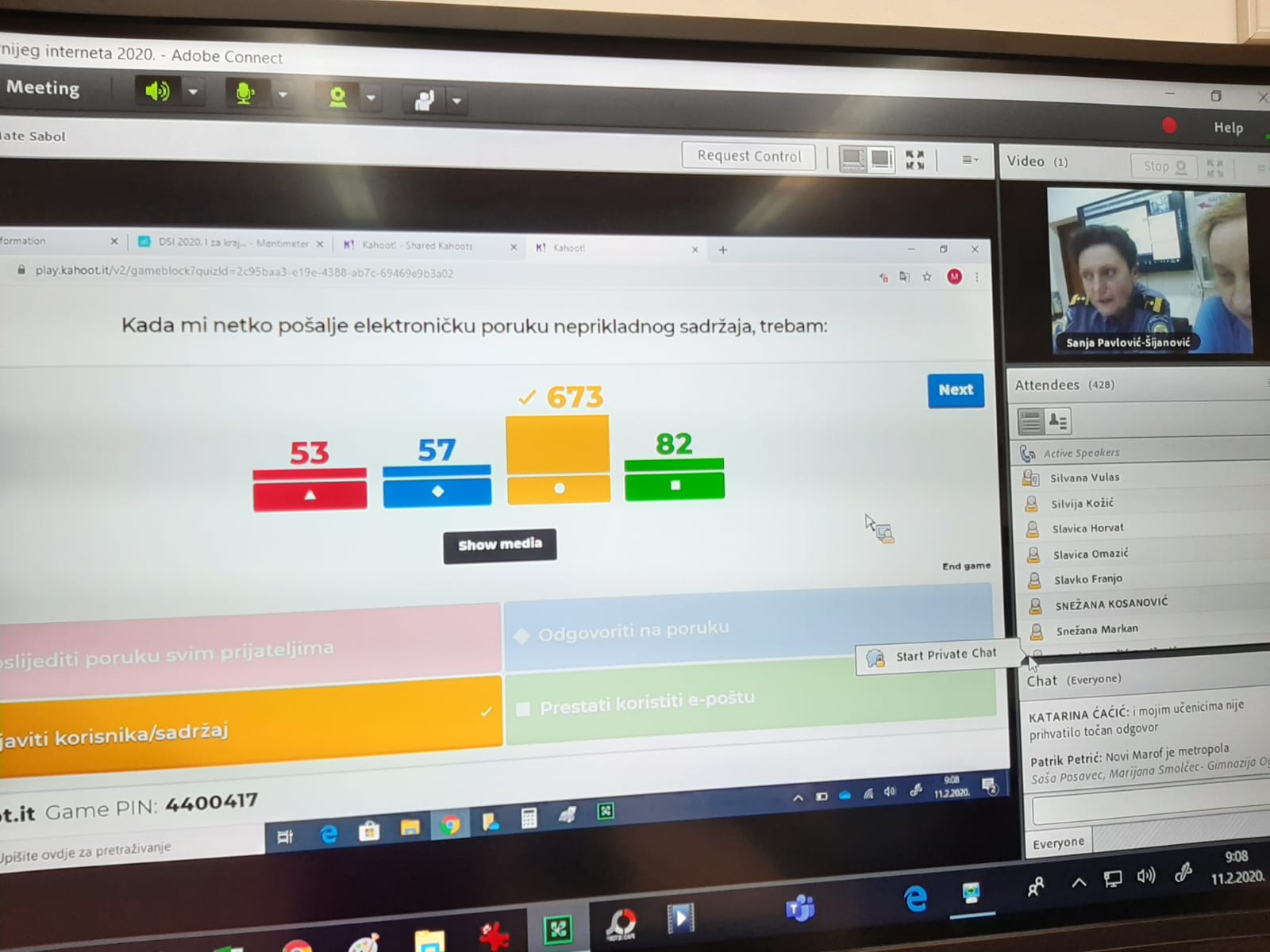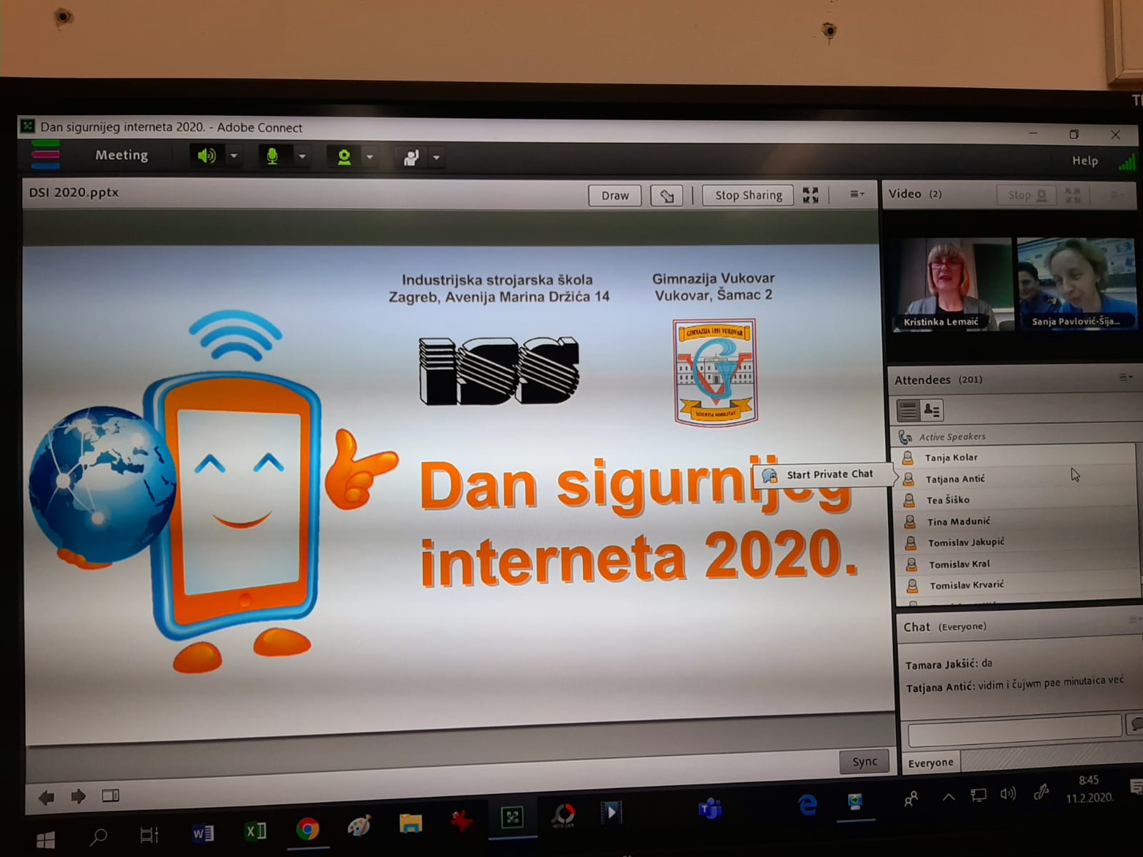 Prvi webinar pod nazivom: „Dan sigurnijeg interneta 2018. Poštuj, stvaraj i poveži se! Bolji internet počinje s tobom“ na inicijativu strukovne učiteljice Kristinke Lemaić iz zagrebačke Industrijske strojarske škole, a u suradnji s profesoricom Sanjom Pavlović Šijanović iz Gimnazije Vukovar, pratilo je više od 60 škola i 2000 učenika koji su imali priliku čuti, uključiti se i dati svoj osvrt na niz raznolikih tema vezanih za prednosti i nedostatke interneta, mogućnosti komunikacije korištenjem interneta, zaštiti osobnih podataka, internetske prijevare, nasilje preko interneta, moguće opasnosti i zamke društvenih mreža te načine zaštite vlastite privatnosti.