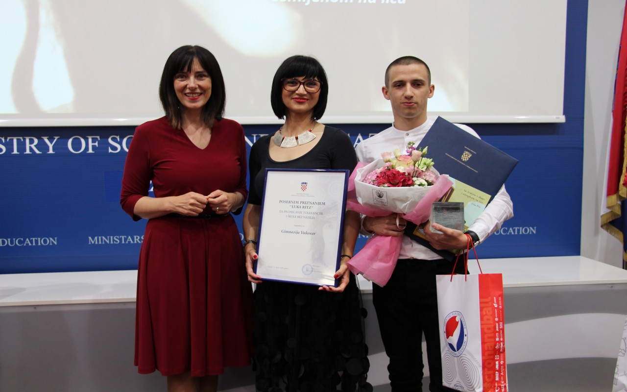 Na svečanosti u Ministarstvu znanosti i obrazovanja 12. lipnja 2020. dodijeljene su godišnje Nagrade “Luka Ritz”. Nagrada se dodjeljuje jednom učeniku osnovne škole i jednom učeniku srednje škole. Ova hvalevrijedna nagrada za promicanje tolerancije i škole bez nasilja, koju dodjeljuje Ministarstvo znanosti i obrazovanja, pripala je vukovarskom gimnazijalcu Luki Prce za ostvarena postignuća u promicanju tolerancije, humanoga i nenasilnoga ponašanja te pozitivnoga odnosa među učenicima i odraslim osobama.