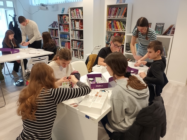 Zabavna i edukativna dvosatna radionica „Little steps with little bits“ namijenjana učenicima osnovnih škola grada Vukovara, održana je 21. ožujka 2023. u Odjelu za mlade "Spajalica" s ciljem istraživanja i iskustvenog učenja u području elektronike. Ovo je četvrto u nizu događanja popularizacije STEAM područja koje za djecu i mlade organiziraju učenici i nastavnici Gimnazije Vukovar u suradnji sa Američkim kutkom Vukovar i odjelom za mlade „Spajalica“ Gradske knjižnice Vukovar.