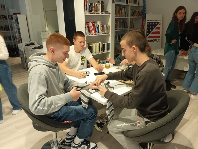 Radionicu su osmislili i organizirali učenici Gimnazije Vukovar pod mentorstvom nastavnika Antonije Milić, Sanje Pavlović Šijanović i Davora Šijanovića, u suradnji sa Američkim kutkom Vukovar i odjelom za mlade „Spajalica“ Gradske knjižnice Vukovar. Kroz sudjelovanje u radionici "Od smeća do blaga", učenici su imali priliku istražiti različite načine kreativne upotrebe materijala koji se smatraju otpadom. Radionica je potaknula razvoj kreativnosti, inovativnosti i vještina problematiziranja. Učenici su trebali razmišljati izvan ustaljenih okvira i pronaći nove načine upotrebe materijala koji su im bili dostupni. Proces stvaranja vlastitih proizvoda, osnažio ih je u realizaciji vlastitih ideja i izričaju vlastite umjetničke vizije. Ova iskustvena radionica doprinijela je razvoju suradničkih vještina i timskog duha.
