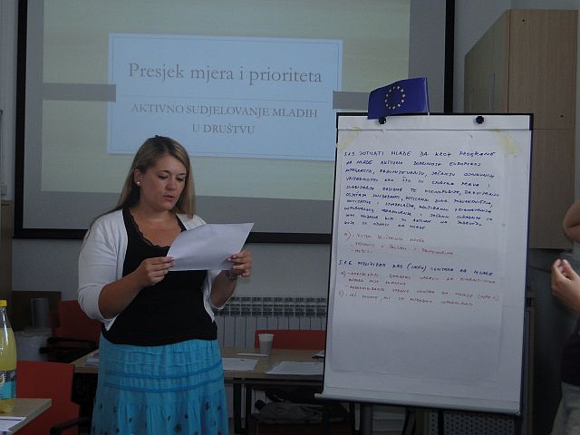 U tri grupe mladi i donositelji odluka kreirali su aktivnosti te ih predstavili ostatku sudionika. Proces je bio kreativan i produktivan, a svakako je ostavljeno i prostora za sve naknadne ideje i prijedloge koje mladi mogu predložiti prije krajnje izrade Operativnog plana.