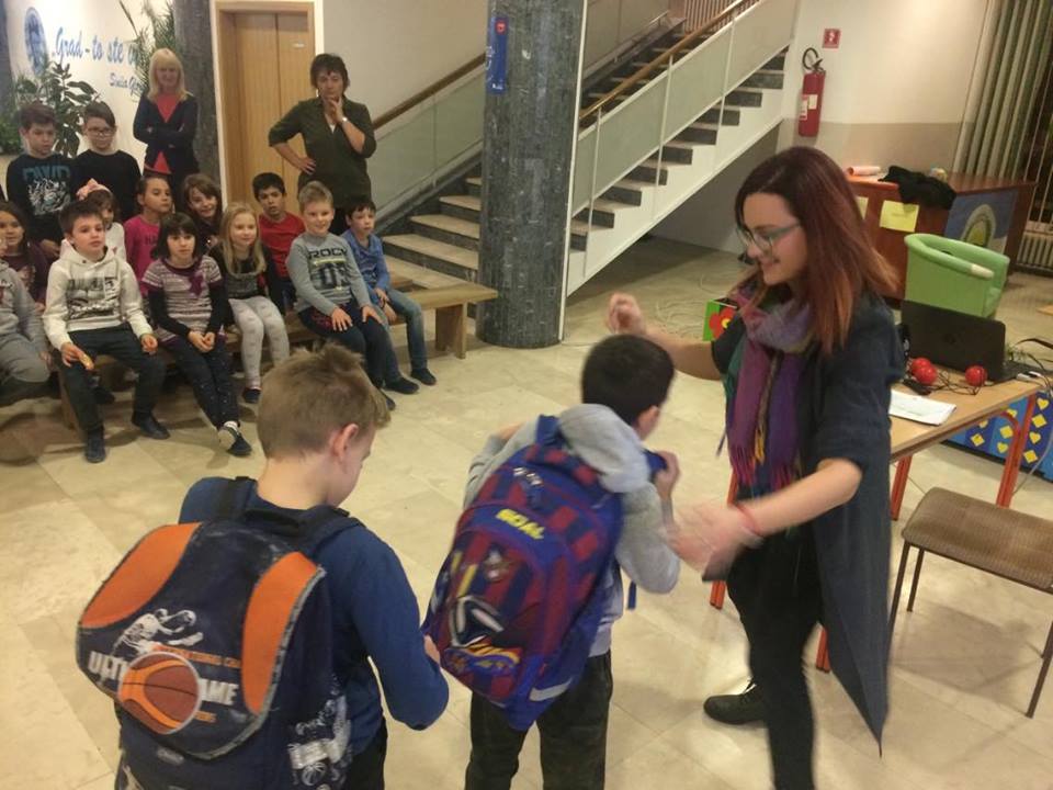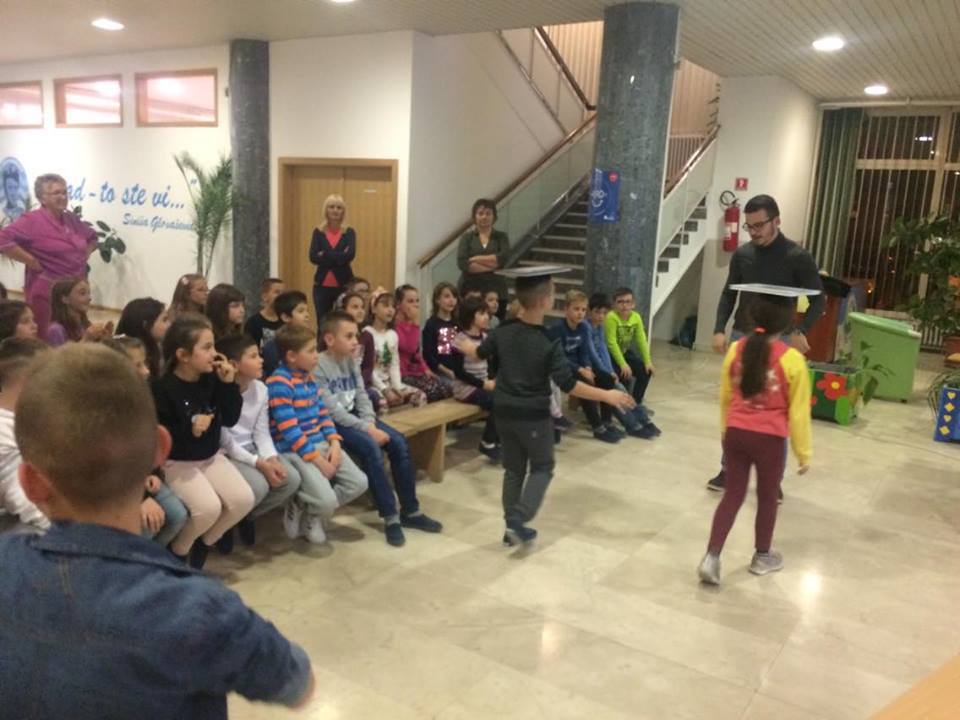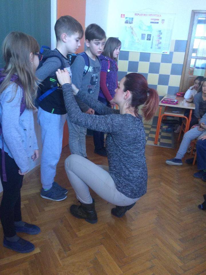 Kroz radionicu „Stolica-kralježnica" učenici su kroz igru i praktične primjere učili o pravilnom sjedenju u klupama, nošenju školskih torbi te općenito o pravilnom držanju. Radionice su održali volonteri udruge Dejana Macura i Marin Galik.