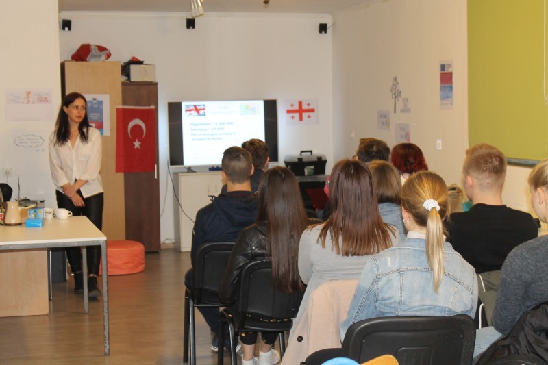 Volonteri Eray iz Turske i Sopio iz Gruzije podijelili su s mladima svoja iskustva korištenja ovog programa, te su ih pozvali da dođu posjetiti njihove zemlje. Posjetitelji su u ugodnoj atmosferi imali prilike i naučiti kako se kuha tradicionalna turska kava.