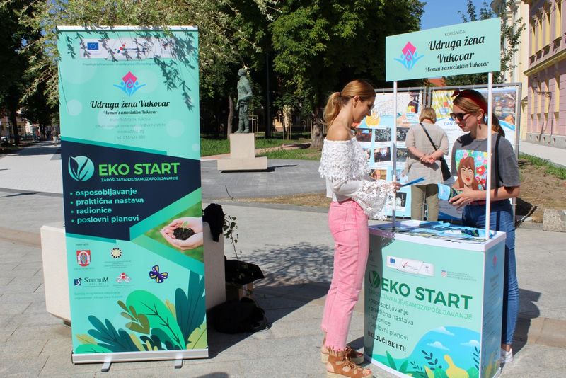 Projekt EKO START, iz poziva „Lokalne inicijative za zapošljavanje-faza III UP.01.3.1.01. provodi Udruga žena Vukovar sa partnerima Učilištem Studium, Poduzetničko razvojnim centrom općine Erdut lokalna razvojna agencija d.o.o. za pružanje usluga, Gradom Vukovarom i Hrvatskim zavodom za zapošljavanje područni ured Vukovar a financiran sredstvima Europske unije u okviru Operativnog programa učinkoviti ljuski potencijali 2014.-2020. iz sredstava Europskog socijalnog fonda u 100% iznosu.