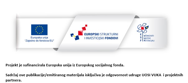 Želimo obavijestiti građane Vukovarsko-srijemske županije da je Udruga osoba sa invaliditetom VUKA Vukovar partner na novom projektu - “ DRUŠTVENI CENTAR IN – mreža podrške za djecu s teškoćama u razvoju i osoba s invaliditetom grada Vukovara“ koji je počeo sa radom 03 lipnja 2020. Vrijednost projekta je 1.987.675,54 kn, od čega 85% sufinancira Europska unija iz Europskog socijalnog fonda, a 15% sufinancira Republika Hrvatska iz sredstava Državnog proračuna.