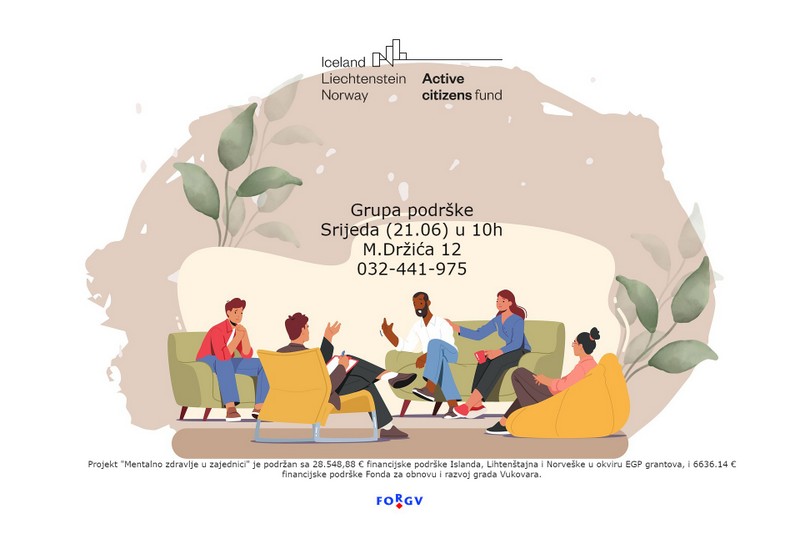 Grupe peer podrške, u okviru projekta Mentalno zdravlje u zajednici, održavaju se u Vukovaru, Slavonskom Brodu, Zagrebu i Splitu. Projekt Mentalno zdravlje u zajednici, financijski je podržan kroz Fond za aktivno građanstvo u Hrvatskoj te sufinanciran sredstvima Fonda za obnovu i razvoj grada Vukovara.