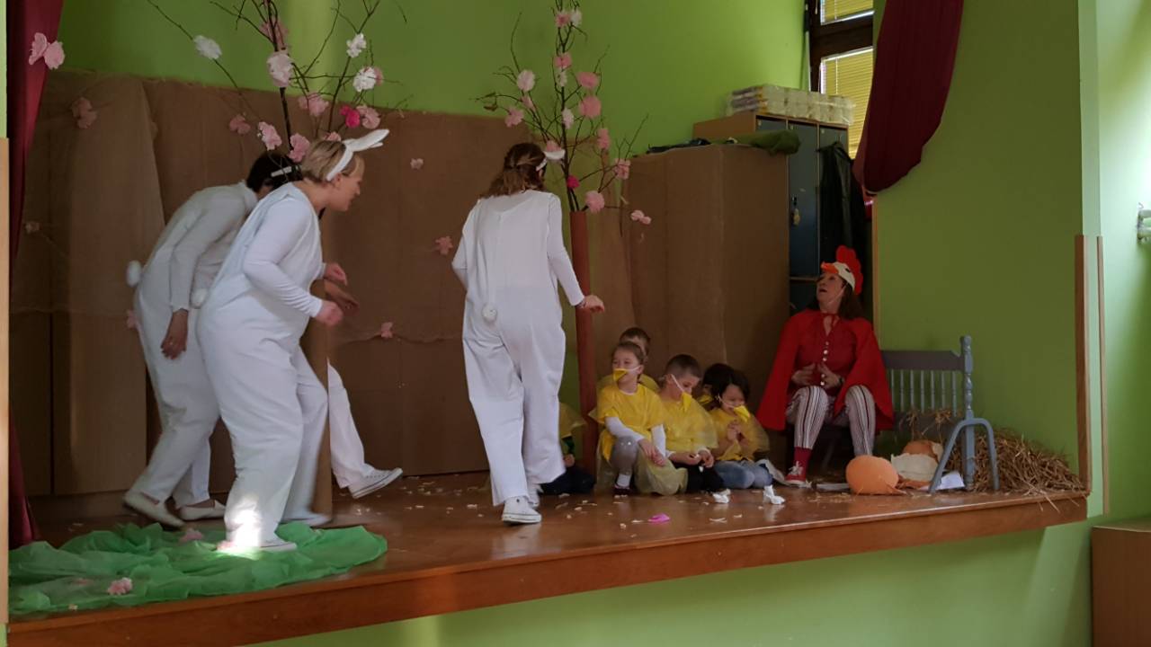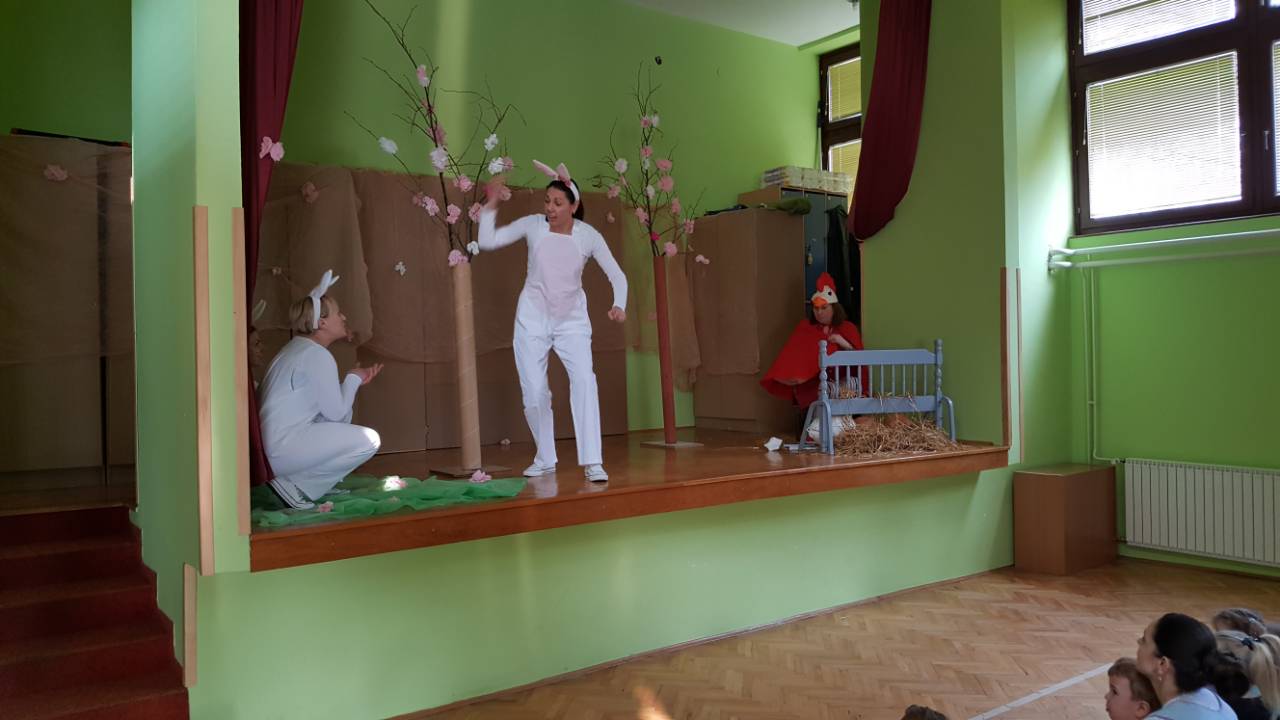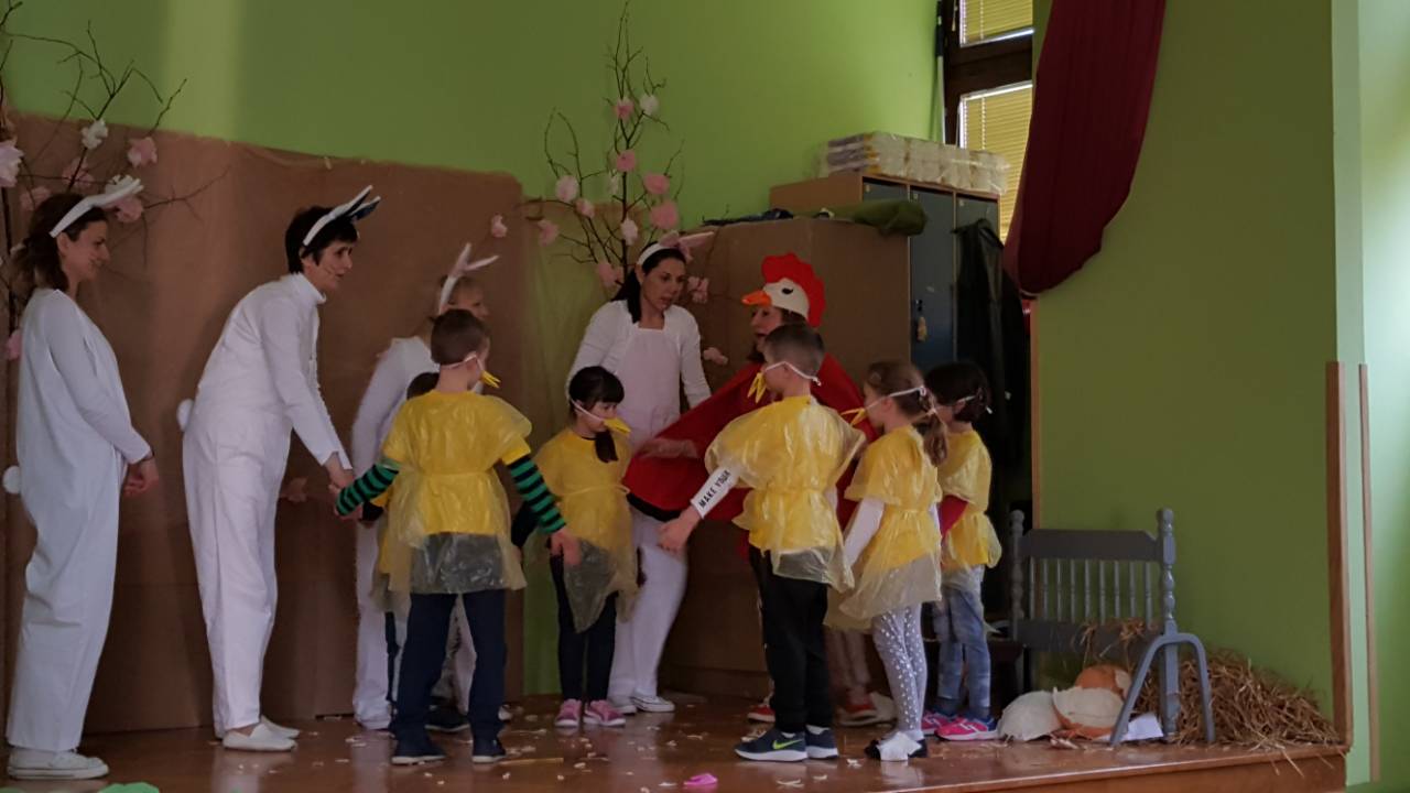U Dječjem vrtiću Vukovar 1, Centralni objekt, u utorak 27.03.2018.g., održana je predstava "Četiri znatiželjna zečića" u kojoj su sudjelovala i djeca starije odgojne skupine Vjeverice. Osim puno smijeha i pjesme djecu su iznenadili i uskršnji paketi koje je darovala " Udruga Hrvatskih Branitelja Sajmište" . Sretan i blagoslovljen Uskrs žele vam djeca i djelatnici Centralnog objekta Dječjeg vrtića Vukovar 1.
