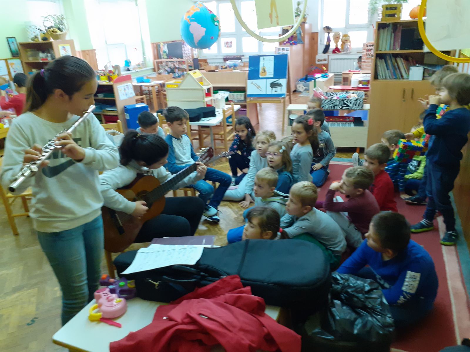 Upravo se oni vraćaju u vrtić koji su prije puno godina pohađali i sviraju nekim novim klincima. Svi učenici glazbene škole posjetili su sve odgojene skupine, prezentirali su djeci instrumente ne kojima sviraju, odgovorili na sva dječja pitanja i naravno, pokazali im kako se svira gitara, flauta, klavijature, tambura, bisernica, harmonika, violina ….