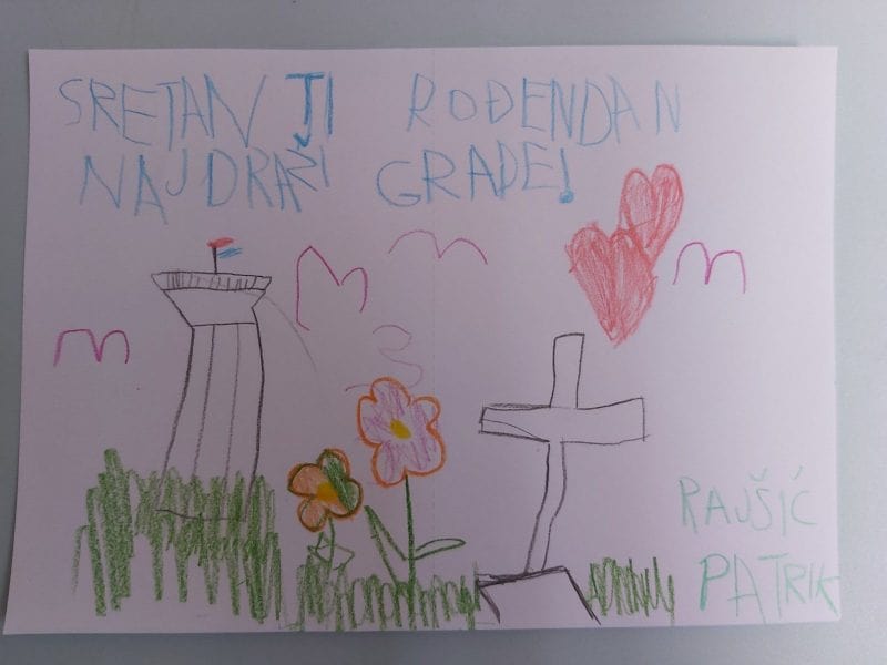 Zbog situacije u kojoj smo se našli, naglo, nepredviđeno i preko noći, ove godine nismo u mogućnosti našem Gradu pokloniti šarenu cvjetnu livadu nasmiješenih dječjih lica, koja je postala tradicija za naš Grad i uveseljavala i mlade i stare. No, o gradu u kojemu živimo i u kojem se svakodnevno budimo, riječi se pišu same bez obzira na novonastale okolnosti, stoga su djeca DV Vukovar I na originalan i sebi svojstven način, svom gradu čestitala rođendan.