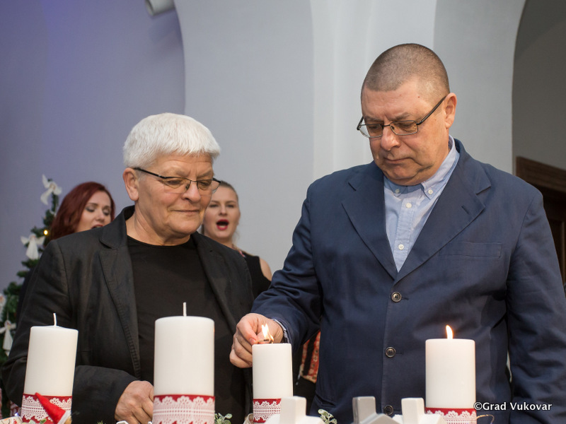 U drugom dijelu programa u Dvorcu Eltz u Gradskom muzeju Vukovar II. adventsku svijeću upalio je GORAN RAKO sa suprugom Nanom, autor arhitektonskog rješenja obnove Dvorca Eltz, Muzeja vučedolske kulture i Vukovarskog vodotornja.