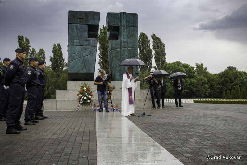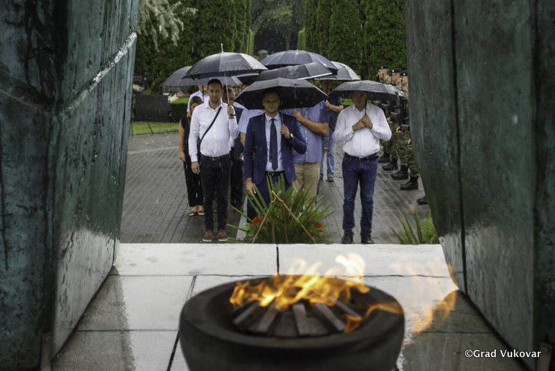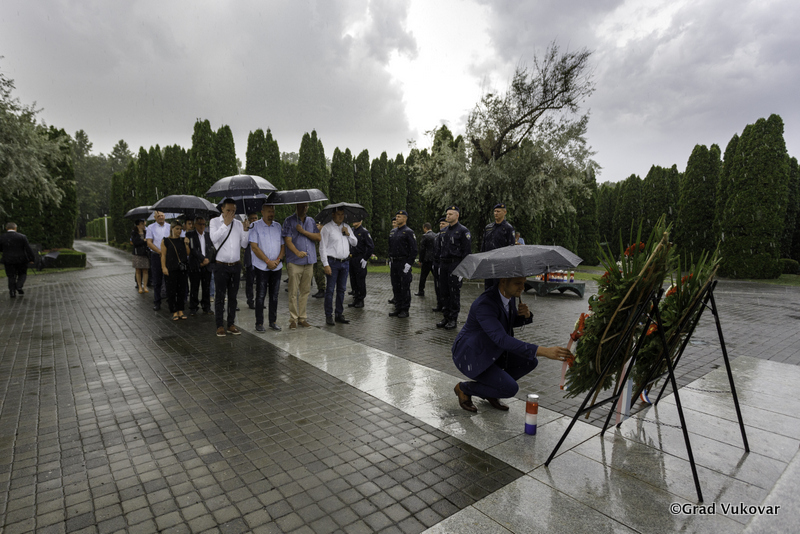 Vijenac je položila delegacija Grada Vukovara predvođena zamjenikom gradonačelnika Grada Vukovara Filipom Sušcem.