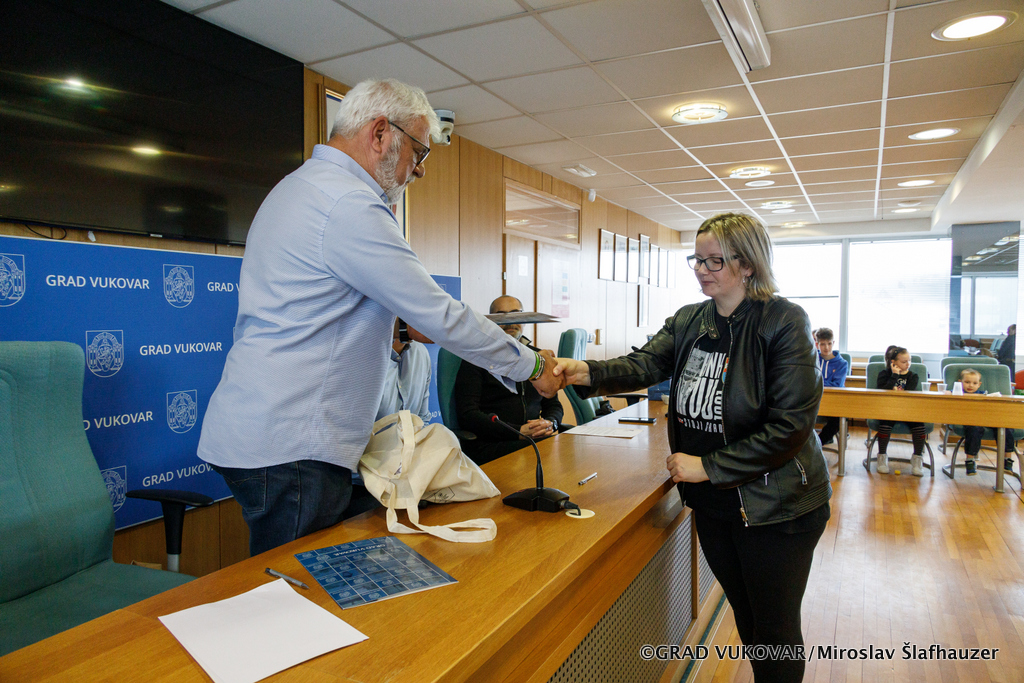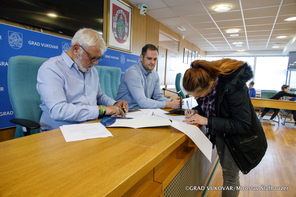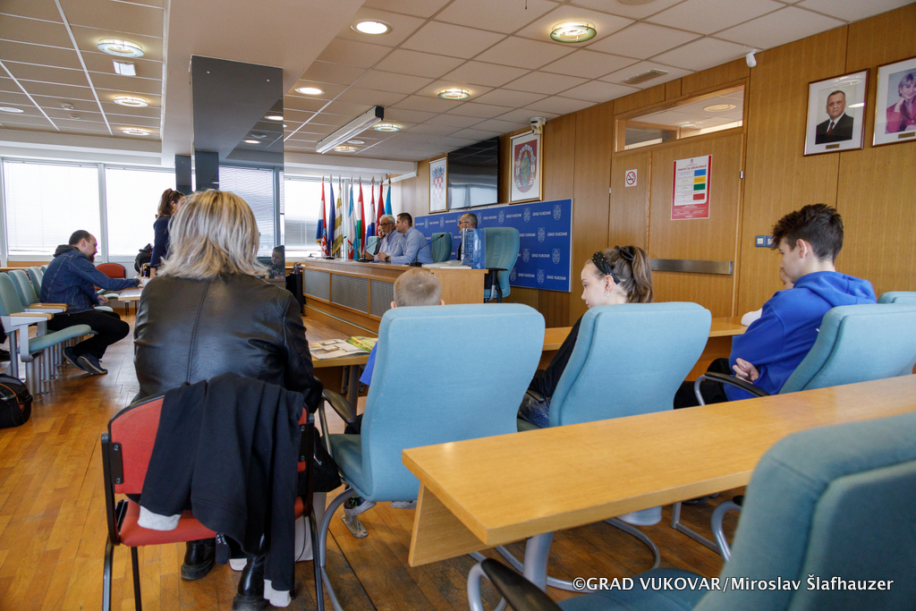 Tim povodom u gradskoj vijećnici zamjenik gradonačelnika Filip Sušac, pročelnik Upravnog odjela za društvene djelatnosti Grada Vukovara Josip Paloš te stručni suradnik za socijalnu skrb Dalibor Žigić ugostili su predsjednika Udruge tjelesnih invalida TOMS Ivicu Bašića, a ujedno je potpisan i Ugovor o donaciji s dvije vukovarske obitelji, Karačić i Strunja.