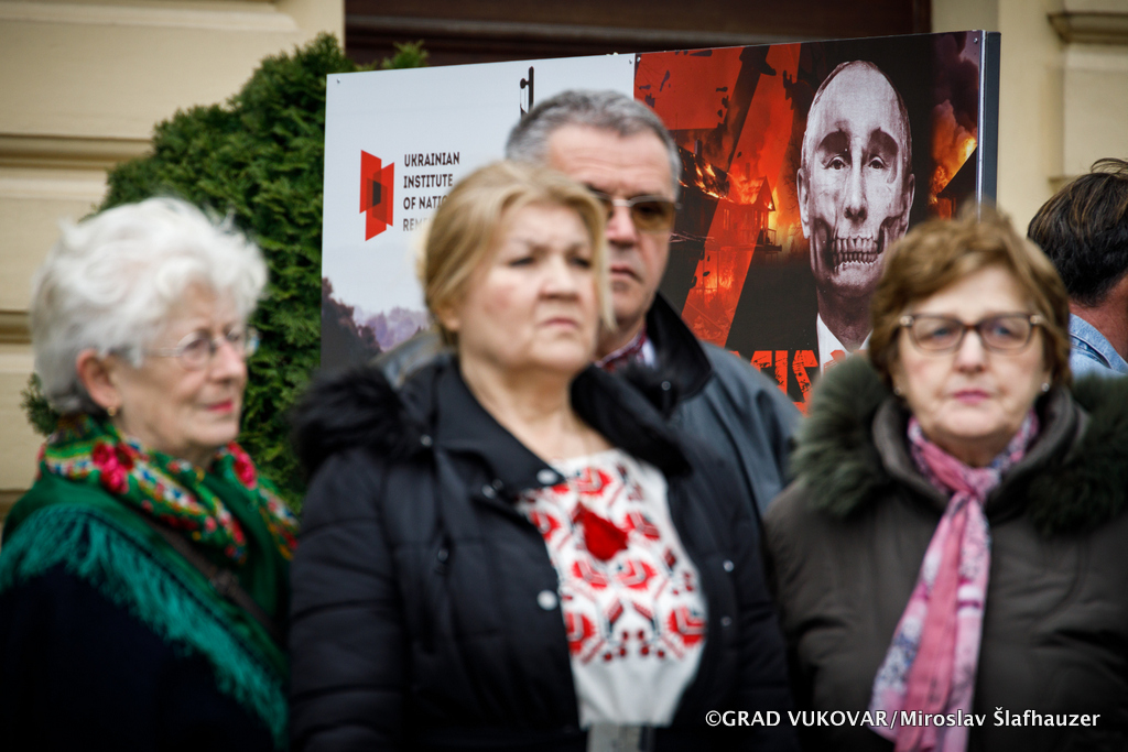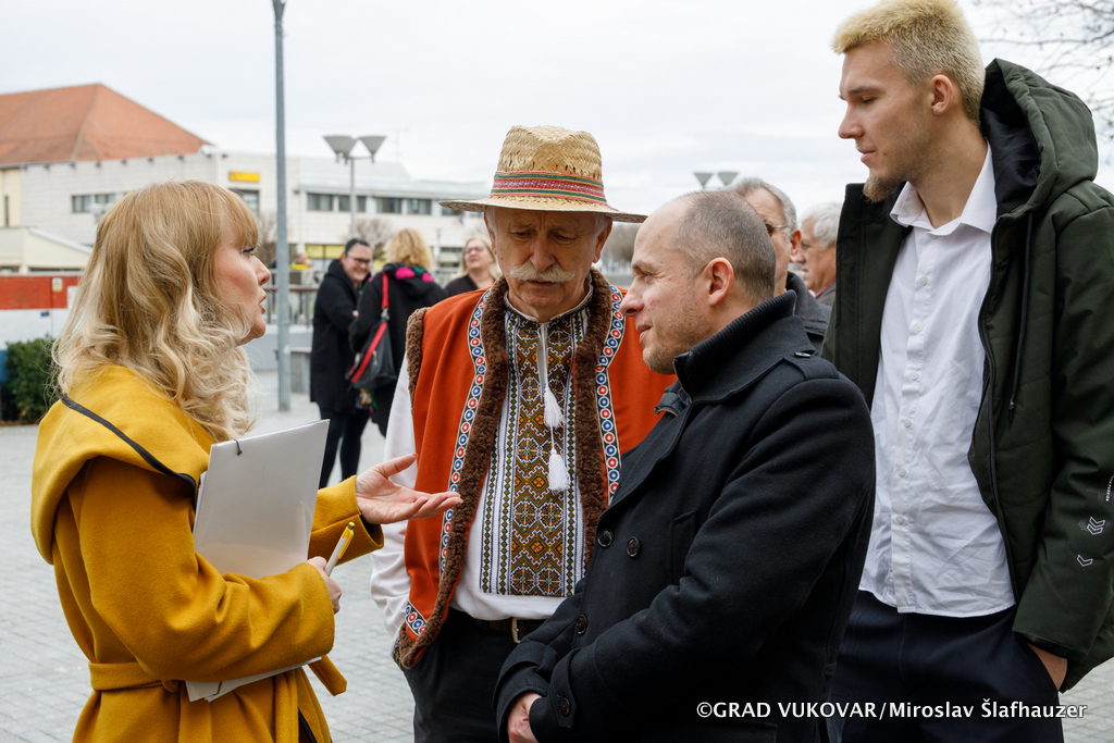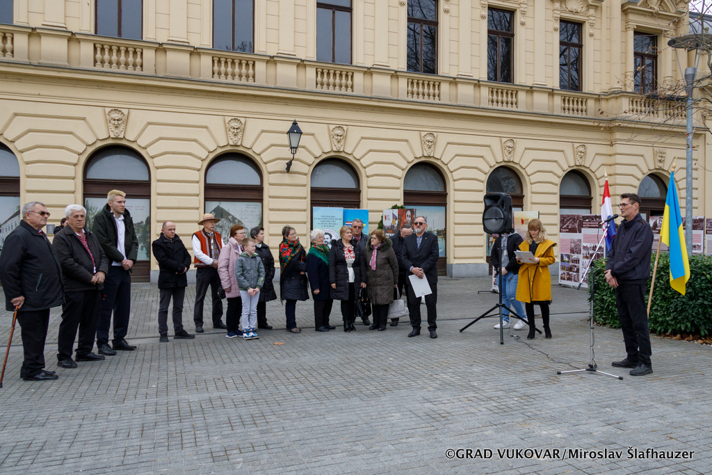 Otvorenju izložbe ispred Grada Vukovara nazočio je pročelnik Upravnog odjela za društvene djelatnosti Josip Paloš koji je istaknuo kontinuiranu potporu Grada Vukovara ukrajinskoj zajednici, zahvalio Ukrajinsko kulturno-prosvjetnom društvu "Ivan Franko" na svim aktivnostima koje provode sa svrhom osvješćivanja javnosti, ali i pomoći koju pružaju osobama koje su utočište pronašle u Vukovaru. "Prošle godine otvoren je i Ukrajinski dom u Vukovaru koji zasigurno pruža dodatnu pomoć ukrajinskoj nacionalnoj manjini. Grad Vukovar u tom smislu i dalje stoji na raspolaganju, a upravo ovih dana gradonačelnik Ivan Penava održao je online sastanak s predstavnicima ukrajinskog grada Melitopolja s ciljem pružanja svojevrsne pomoći i informacija vezanih uz obnovu razrušenih gradova.", pojasnio je Paloš.
