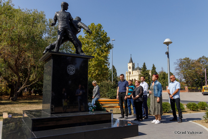 „Riječ je još jednoj od mnogobrojnih tragedija grada Vukovara Petru Kačiću, zapovjedniku obrane gradske četvrti Sajmište i Igoru Kačiću, 16-godišnjaku i najmlađoj žrtvi Ovčare koji je stradao zato što je bio Hrvat i zato što mu je otac bio jedan od zapovjednika. U spomen na njih dvojicu, ali i sve stradale u Domovinskome ratu, a posebno na Sajmištu, Grad Vukovar je na ovo mjesto gdje je dugo bila crta razgraničenja između obrambenih hrvatskih snaga i velikosrpskih agresora postavio spomenik koji je prvotno bio napravljen od lošeg materijala nepogodnog za vremenske uvjete. Izradom replike prvotnog spomenika ispravili smo tu nepravdu i postavili trajnu uspomenu na oca i sina Kačić,“ rekao je gradonačelnik Penava.