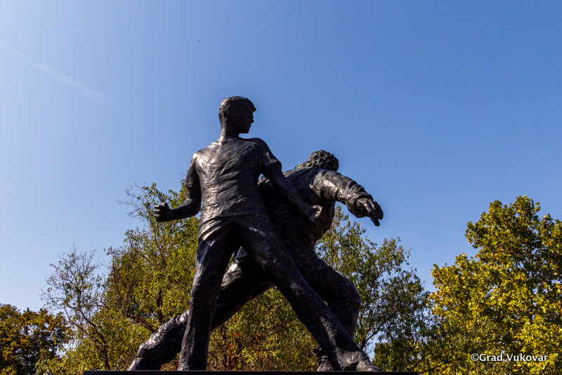 Skulptura „Otac i sin“ djelo je autora Zvonimira Orčića i Josipa Cvrtile u spomen zapovjedniku Sajmišta pukovnika Petra Kačića i sina mu Igora Kačića. Spomenik se nalazi u Mazda parku. Bio je izrađen od umjetnog kamena, ali je s vremenom dotrajao i počeo pucati. Kako bi ga trajno sačuvali Grad Vukovar je odlučio spomenik lijevati u broncu.