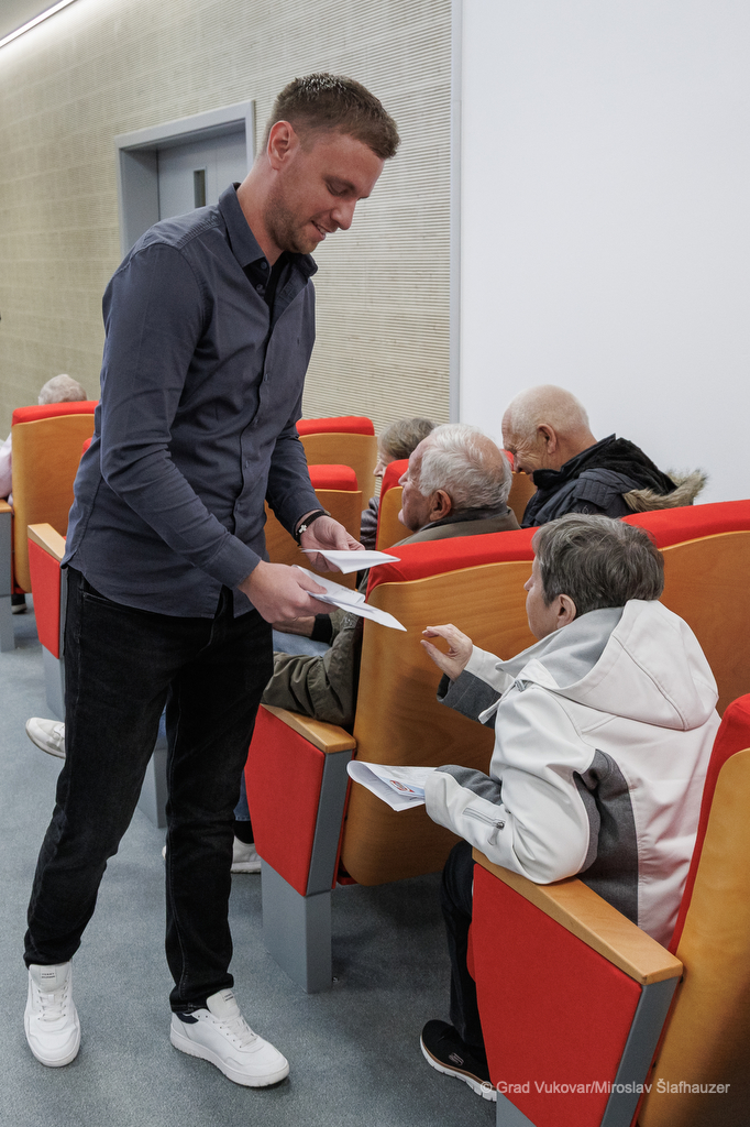 Okupljene je pozdravio gradonačelnik Marijan Pavliček, koji je naglasio važnost redovitog dijaloga s građanima, posebno s umirovljenicima, kao važnim dijelom zajednice. Uz gradonačelnika, tribini su prisustvovali i pročelnik Upravnog odjela za obrazovanje, sport i branitelje Josip Paloš te pročelnik Upravnog odjela za komunalno gospodarstvo i graditeljstvo Dražen Čulig.