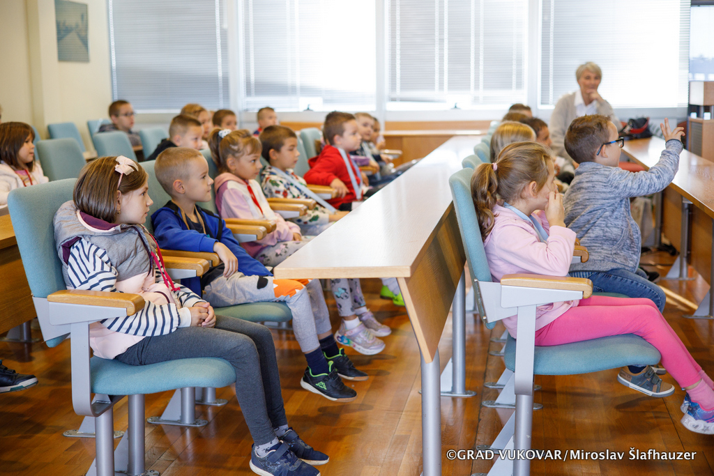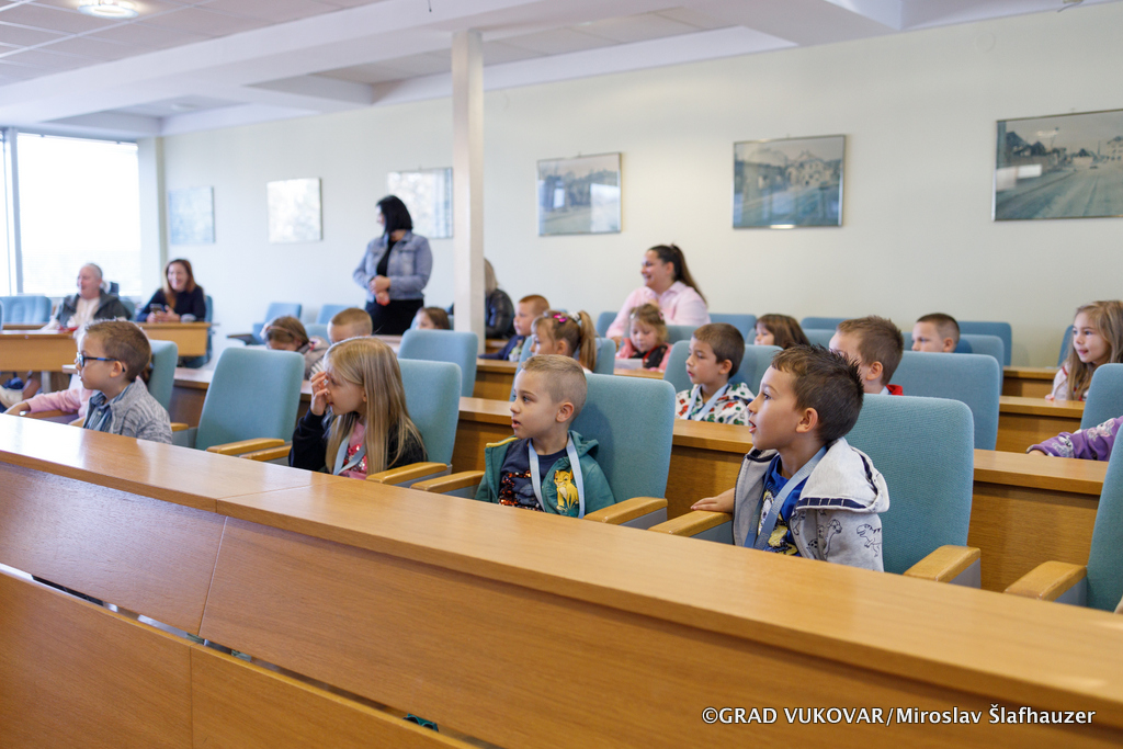 U Gradskoj vijećnici Grada Vukovara vukovarski mališani su se susreli s gradonačelnikom Ivanom Penavom i pročelnikom Upravnog odjela za obrazovanje, sport i branitelje Darkom Dimićem, a ovo je bila prilika za zanimljiv razgovor s pregršt pitanja i ideja.