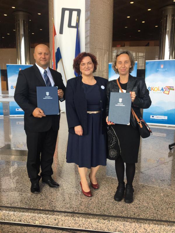 Iz vukovarske gimnazije nagrađena su tri nastavnika: Dvojković Karolina, prof. fizike, Davor Šijanovć, prof. tjelesne i zdravstvene kulture i Sanja Pavlović Šijanović, prof. informatike.