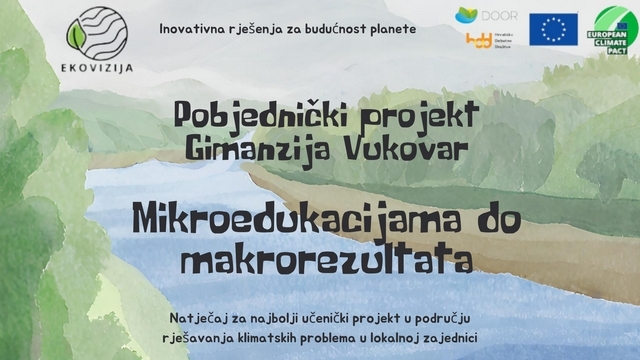 U gradu Vukovaru, smještenom uz drugu najdužu rijeku u Europi - Dunav, vukovarski gimnazijalci udružili su snage i suočili se s rastućim problemom mikroplastike u rijeci. Njihova inicijativa "Mikroedukacijama do makrorezultata", odabrana je kao jedna od najkreativnijih, najizvedivijih i najodrživijih projektnih ideja na natječaju EkoVizija.
